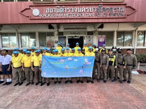 วันที่ 17 ต.ค.2567 เวลา 09.00 น. พ.ต.อ.ประภาส แก้วฉีด ผกก.สน.โคกคราม พ.ต.ท.ธีรภัทร คุปตานนท์ รอง ผกก.ป.สน.โคกคราม พ.ต.ท.พูลพัฒน์ ธรรมรัชต์เจริญ รอง ผกก.สส.สน.โคกคราม พ.ต.ท.ปรัชญา จันทร์เกิด สว.อก.สน.โคกคราม พ.ต.ต.ธวัชชัย พันธ์จิ๋ว สว.จร.สน.โคกคราม นำข้าราชการตำรวจจิตอาสา สน.โคกคราม ประชาชนจิตอาสา ร่วมกิจกรรมจิตอาสา “เราทำความ ดี เพื่อชาติศาสน์ กษัตริย์” ร่วมทำกิจกรรมจิตอาสา พัฒนา ปรับภูมิทัศน์ บริเวณโดยรอบ สน.โคกคราม และเก็บขยะ กำจัดวัชพืช ลำคลองบางชวดด้วน จากนั้นนำกำลังพลจิตอาสาร่วมถวาย ข้าวสาร อาหารแห้ง และเครื่องสังฆทานเพื่อถวายเป็นพระราชกุศลน้อมรำลึกในพระมหากรุณาธิคุณเนื่องในวันคล้ายวันสวรรคตพระบาทสมเด็จพระบรมชนกาธิเบศรมหาภูมิพลอดุลยเดชมหาราช ณ วัดนวลจันทร์ แสดงความจงรักภักดีสำนึกในพระมหากรุณาธิคุณที่ได้ทรงปฏิบัติพระราชกรณียกิจนานับปการ