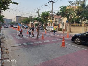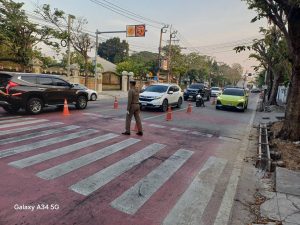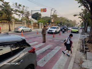 วันที่ 21 มกราคม 2568 เวลา 07.00 น. ร.ต.ท.ประสิทธิ์ ม่วงวันดีรอง สว.(จร.)สน.โคกคราม (ทำหน้าที่ครูพี่เลี้ยง) พร้อมด้วย นสต.ฤทธิพล โพธิ์วิจิตร นสต. ฝึกงาน อำนวยการจราจรหน้าโรงเรียนโชคชัย ลาดพร้าว ถนนสุคนธสวัสดิ์ เขตลาดพร้าว แขวงจรเข้บัว กรุงเทพมหานคร