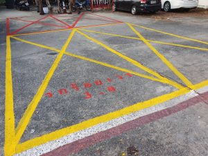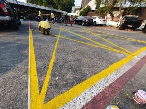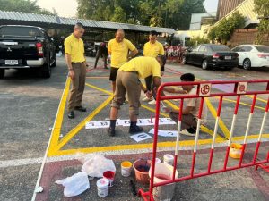 นำข้าราชการตำรวจ ดำเนินการตีเส้นทาสีช่อง จอดรถบริเวณหลังอาคารที่ทำการ สน.โคกคราม