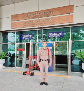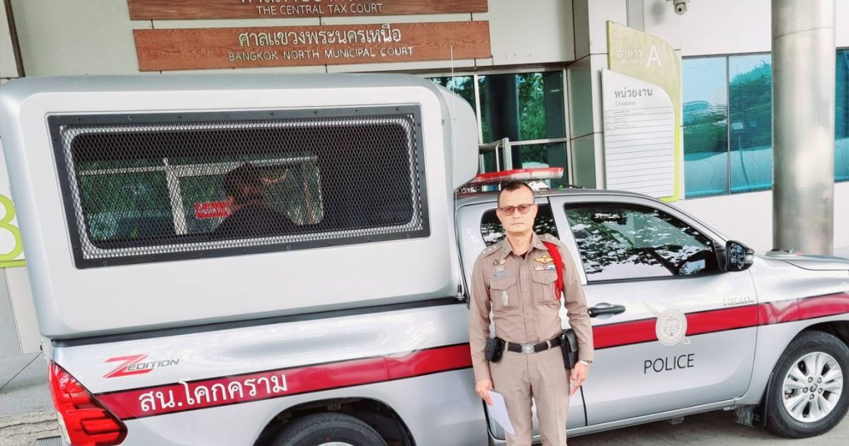 ร.ต.อ.ปารเมศ รักษา รอง สว.(สอบสวน)สน.โคกคราม เวรฝากขังได้นำตัวผู้ต้องหาฝากขังที่ศาลอาญารัชดา