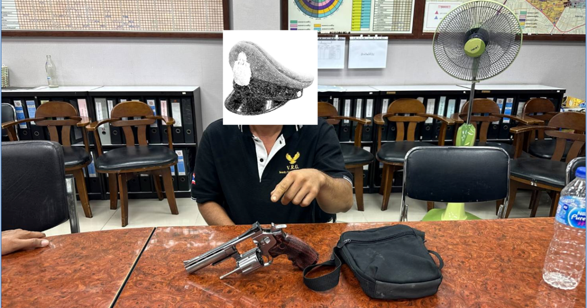 พฤติการณ์กล่าวคือ 19 พ.ย.2567 เวลาประมาณ 20.45 น.เจ้าหน้าที่ตำรวจสายตรวจ สน.โคกคราม ได้รับแจ้งจากศูนย์วิทยุ สน.โคกครามว่า มีเหตุสามีเก่าเลิกกันไปแล้วตามมาอาละวาด พกพาวุธปืนลูกโม่ติดตัวมาด้วย เจ้าหน้าที่ตำรวจชุดจับกุมจึงเข้าไปตรวจสอบสถานที่ที่ได้รับแจ้งเหตุ พบ ชายต้องสงสัยลักษณะสวมเสื้อสีดำ ตามที่ได้รับแจ้งลักษณะในมือถืออาวุธปืนลูกโม่ข่มขู่ผู้แจ้ง เมื่อเจ้าหน้าที่ตำรวจชุดจับกุมแสดงตัว ชายคนดังกล่าวได้ขับขี่รถ จยย. ยี่ห้อ HONDAหลบหนีไปตามเส้นทาง ถ.ประเสริฐมนูกิจฯ มุ่งหน้า ถนน นวมินทร์ เมื่อถึงบริเวณปาก ซอยนวมินทร์ 113 ชายต้องสงสัยคนดังกล่าวได้ขับรถ จยย. เสียหลักและล้มลง เจ้าหน้าที่ชุดจับกุมจึงได้เข้าควบคุมตัวโดยพบวัตถุลักษณะคล้ายอาวุธปืนอยู่ภายในกระเป๋าสะพายข้างสีดำที่ชายคนดังกล่าวสะพายอยู่ และต่อมาจึงได้ทำการบันทึกตรวจยึดสิ่งเทียมอาวุธปืน เจ้าหน้าที่ตำรวจชุดรับตัวผู้ถูกจับจึงได้แจ้งข้อกล่าวหาเบื้องต้นให้ผู้ต้องหาทราบและแจ้งสิทธิ์ตามกฎหมายให้ทราบเป็นที่เข้าใจแล้ว
