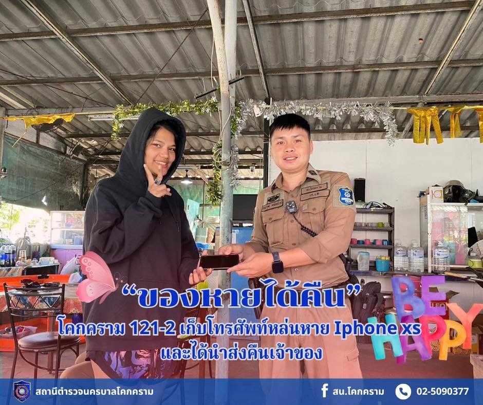🚨🚔“ของหายได้คืน”🚨🚔 สายตรวจ โคกคราม 121-2 เก็บโทรศัพท์ Iphone xs ได้ และติดตามนำส่งคืนเจ้าของถือมือเจ