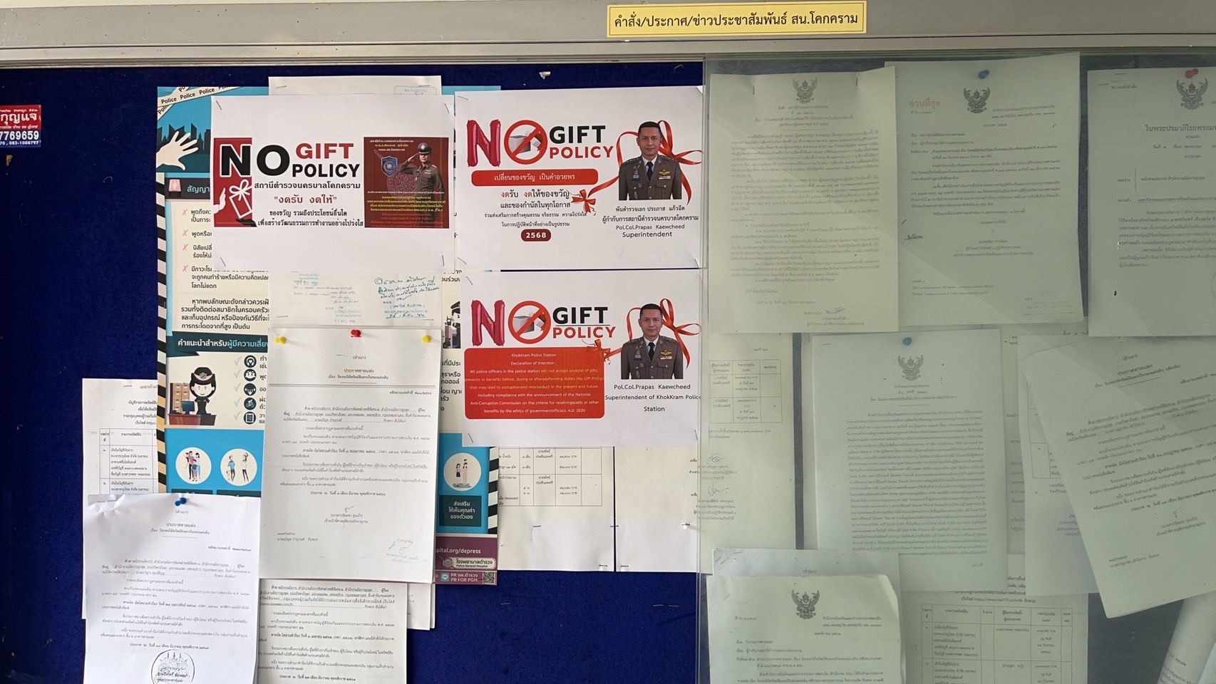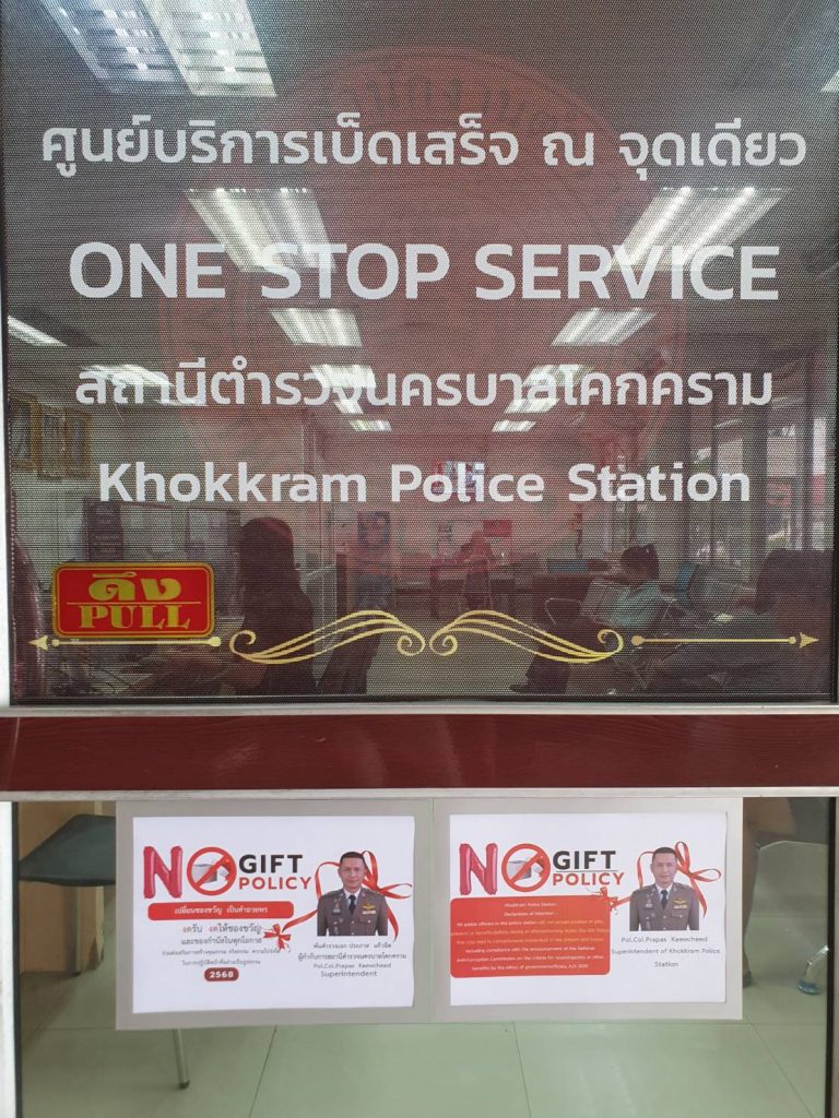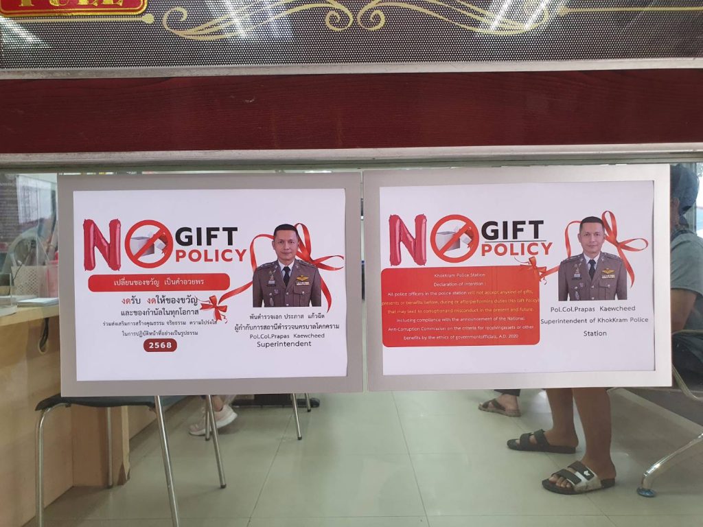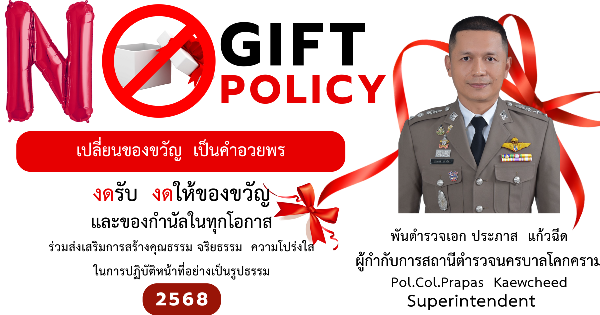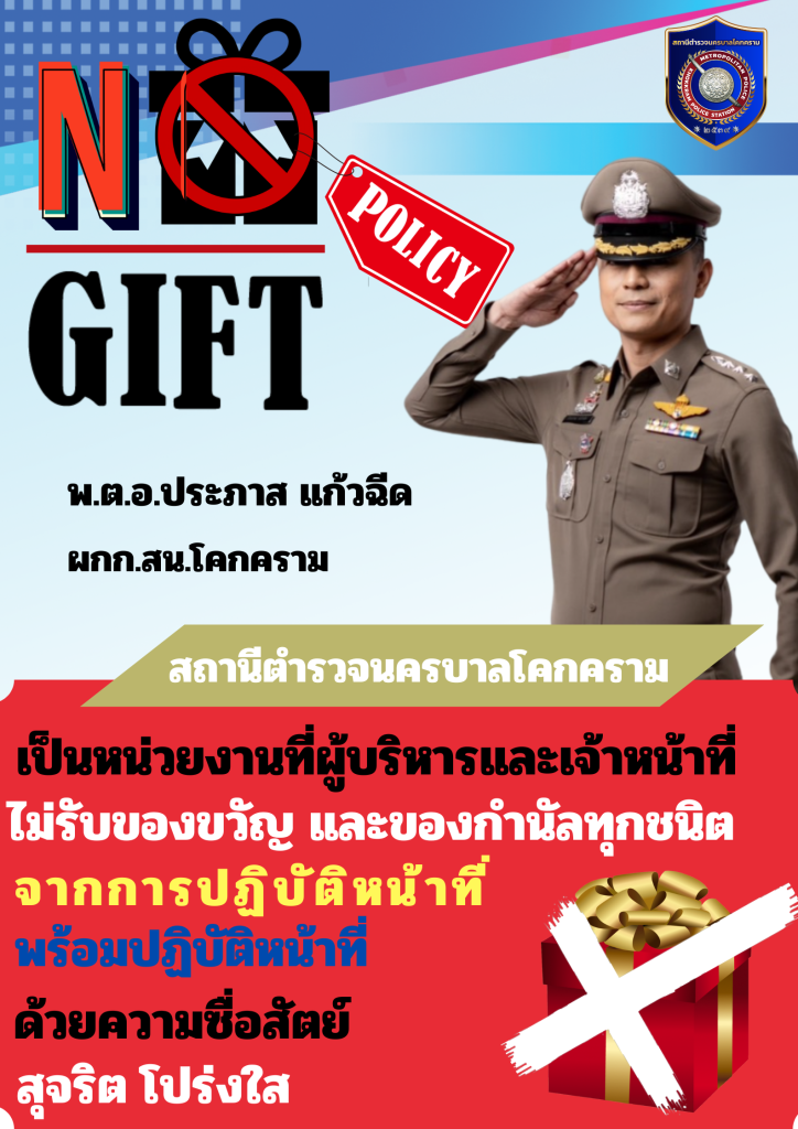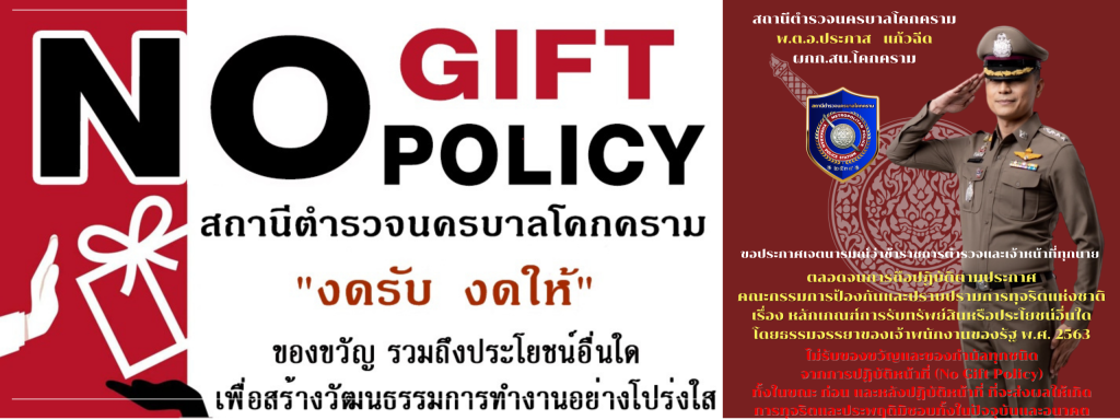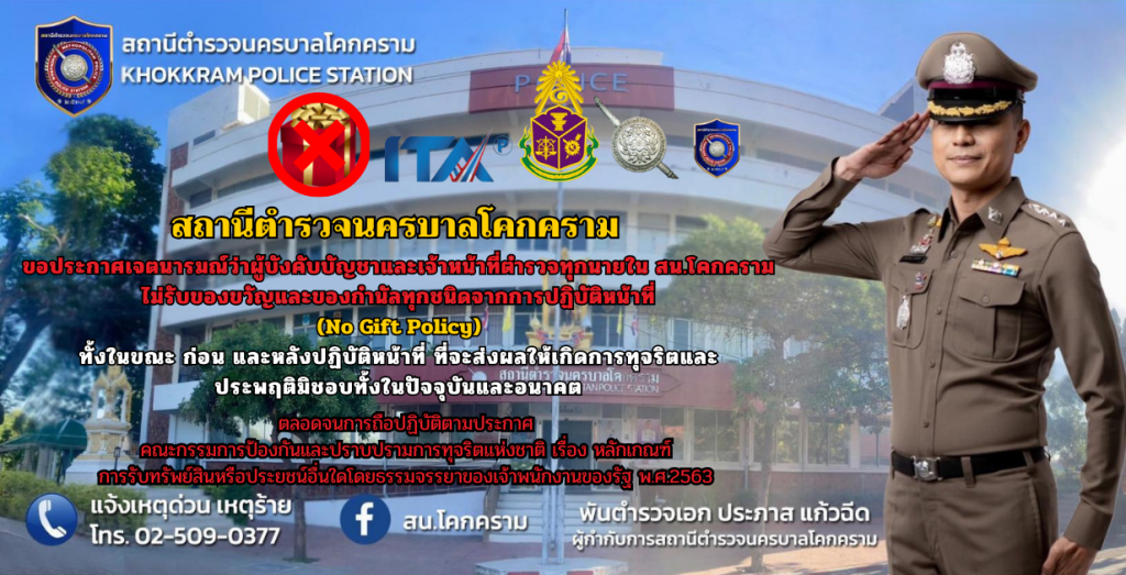 Announcement of Khokkram Metropolitan Police Station Subject: Intention to not accept any kind of gifts from performing duties (No Gift Policy)