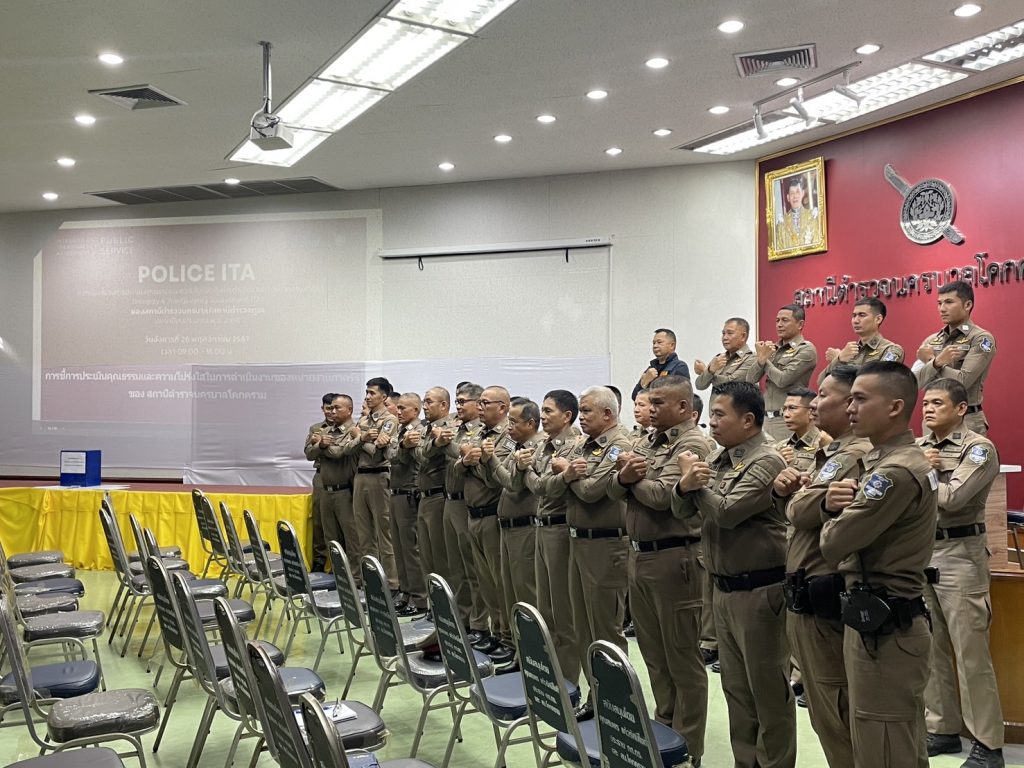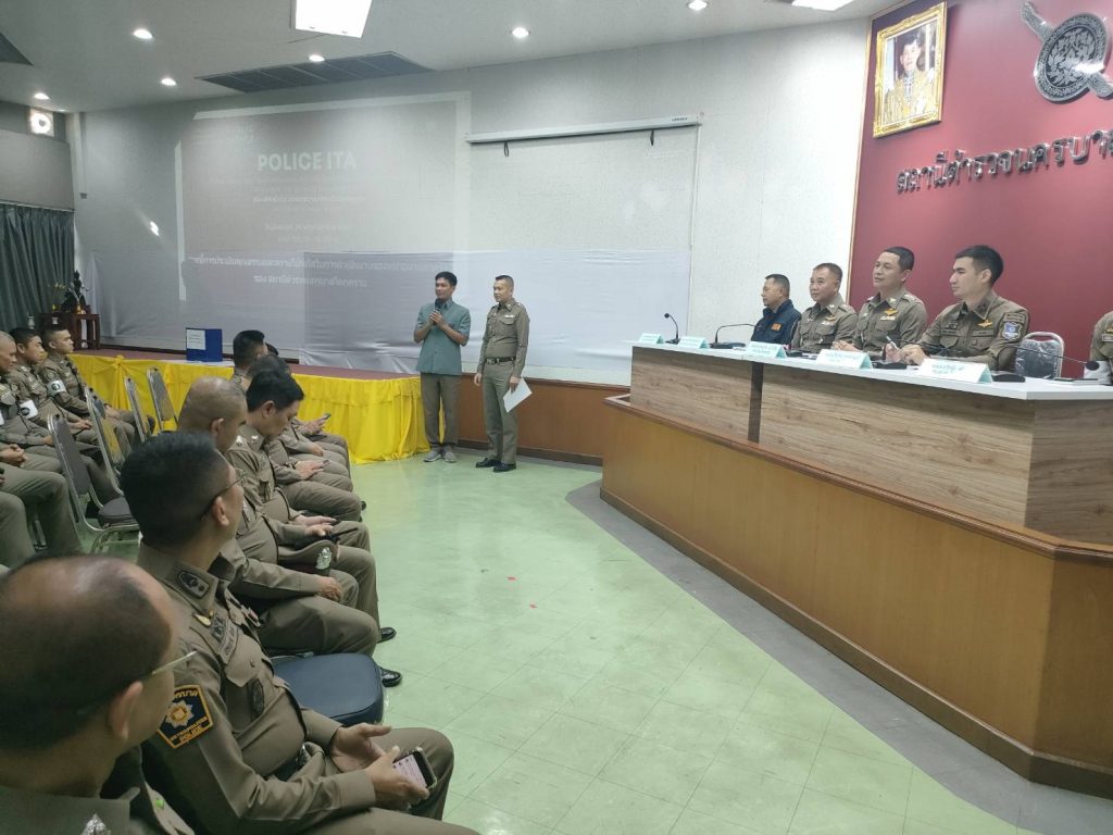 พ.ต.อ.ประภาส แก้วฉีด ผกก.สน.โคกคราม พร้อมหัวหน้างานทุกสายงานชี้แจงการดำเนินการตามโครงการประเมินคุณธรรมและความโปร่งในในการดำเนินงานของหน่วยงานภาครัฐ 2568