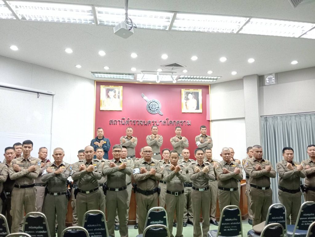 พ.ต.อ.ประภาส แก้วฉีด ผกก.สน.โคกคราม ร่วมกับ คณะกรรมการ กต.ตร.สน.โคกคราม ข้าราชการตำรวจ สน.โคกคราม แสดงสัญลักษณ์ ในการต่อต้านการทุจริตทุกประเภท