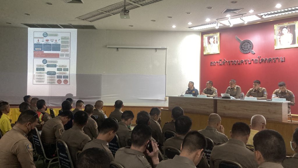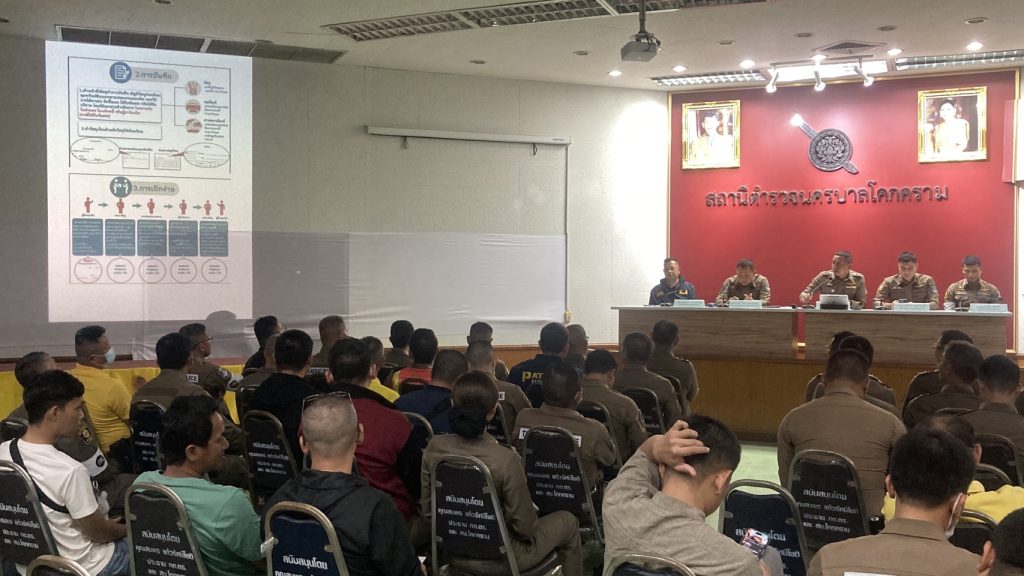 พ.ต.ทพูลพัฒน์ ธรรมรัชต์เจริญ รอง ผกก.สส.สน.โคกคราม พ.ต.ท.เดชาวัสส์ ขันกสิกรรม รอง ผกก.(สอบสวน)สน.โคกคราม พ.ต.ท.ปรัชญา จันทร์เกิด สว.อก.สน.โคกคราม และพ.ต.ท.ธวัชชัย พันธ์จิ๋ว สว.จร.สน.โคกคราม พร้อมผู้บริหารและข้าราชการตำรวจในสังกัด สน.โคกคราม ประชุมมอบนโยบายบริหารราชการตามที่ผู้บังคับบัญชาได้มอบนโยบายปฏิบัติราชการมา และชี้แจงทำความเข้าใจให้กับข้าราชการตำรวจให้ทราบถึงการบริหารและจัดการจัดการทรัพย์สินของราชการ ของบริจาค และการจัดเก็บของกลาง และแนวทางการนำไปปฏิบัติ เพื่อให้มีการจัดเก็บ การเบิกจ่าย นำไปใช้ในการปฏิบัติงานของเจ้าหน้าที่ตำรวจ เป็นไปอย่างโปร่งใส มีประสิทธิภาพ คุ้มค่า ตรวจสอบได้และเกิดประโยชน์สูงสุดในเชิงภารกิจของสำนักงานตำรวจแห่งชาติ