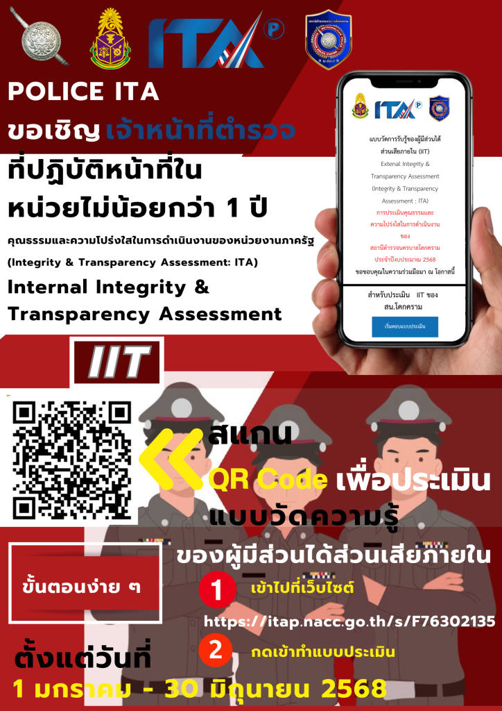 การดำเนินการขับเคลื่อนตามโครงการ การประเมินคุณธรรมการความโปร่งใสในการดำเนินงานของหน่วยงานภาครัฐ ของสถานีตำรวจประจำปีงบประมาณ พ.ศ. 2568 (INTEGRITY & TRANSPARENCY ASSESSMENT: ITA) สถานีตำรวจนครบาล โคกคราม